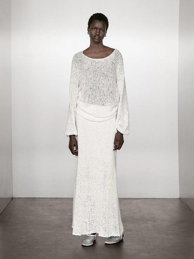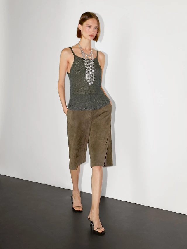 Top cache-cœur à encolure américaine en maille de lin mélangé