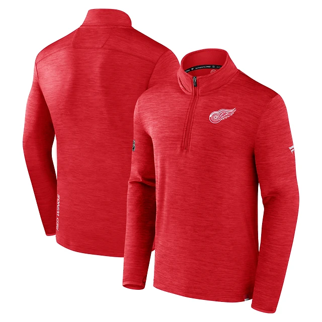 Pull à enfiler Authentic Pro quart de zip pour homme Fanatics Heather Red Detroit Wings