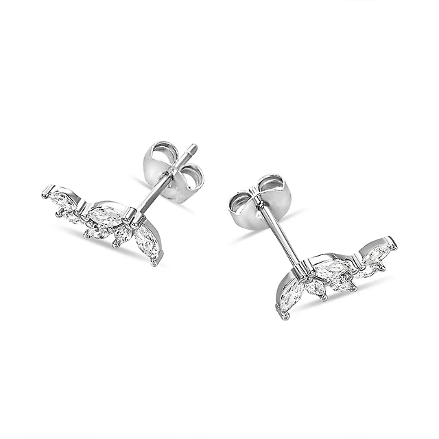 Boucles d’Oreilles en Forme de Poire en Argent Serties de Zircons Cubiques. Color: blanc | Doucet Latendresse