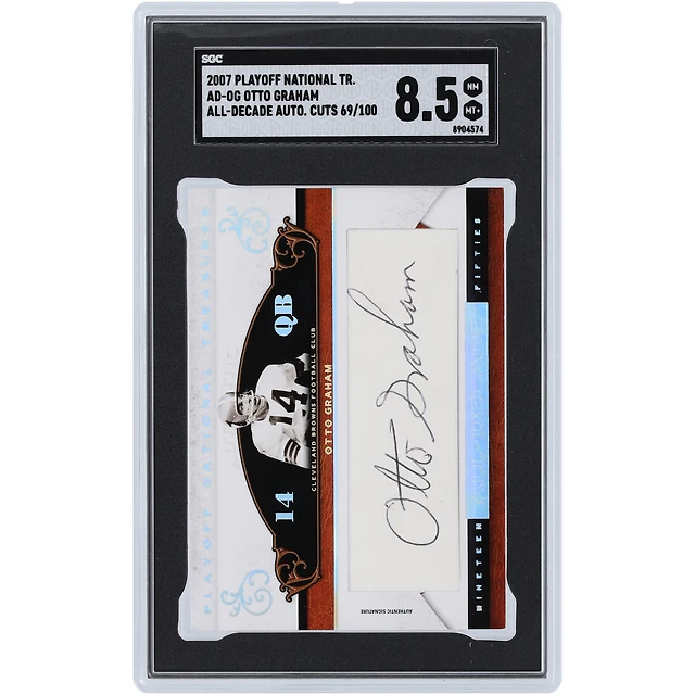 Carte Marion Motley Cleveland Browns 2007 Playoff National Treasures All-Decade Material Dual-Color Relic #AD-MM #3/25 authentifiée SGC 8.5
