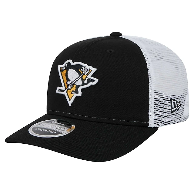 Casquette extensible à boutons-pression Core Trucker 9SEVENTY noire des Penguins de Pittsburgh de New Era pour homme