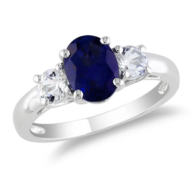 Bague de fiançailles Miabella avec 1.33 carat de saphir blanc synthétique et diamant en or blanc 10k