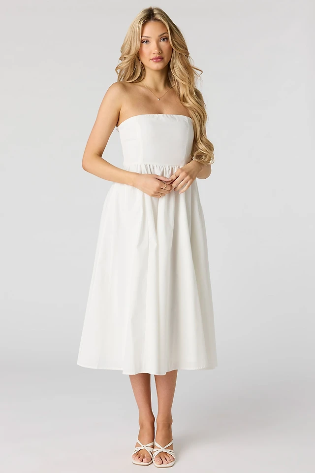 Minirobe à épaules dénudées avec taille smockée