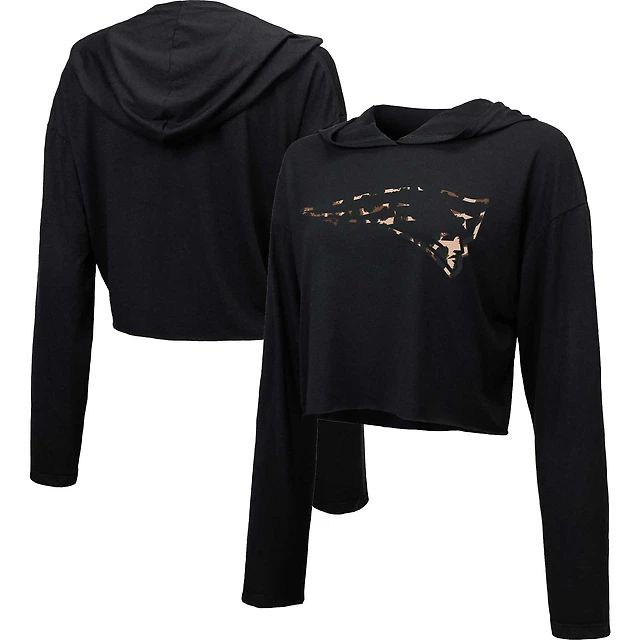 Sweat à capuche court léopard Majestic Threads New England Patriots noir pour femme