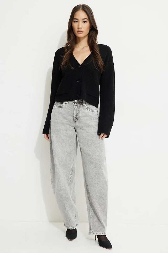 Cardigan en mailles torsadées et jean à jambe évasée