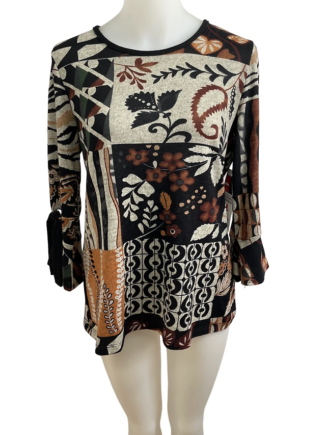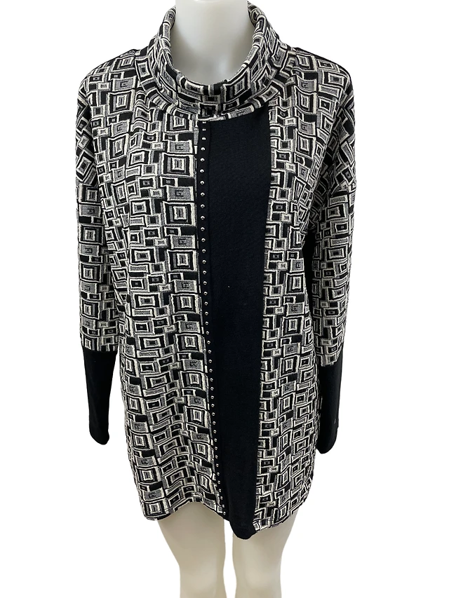 Haut uni/imprimé rayures au col drapé, effet 2p