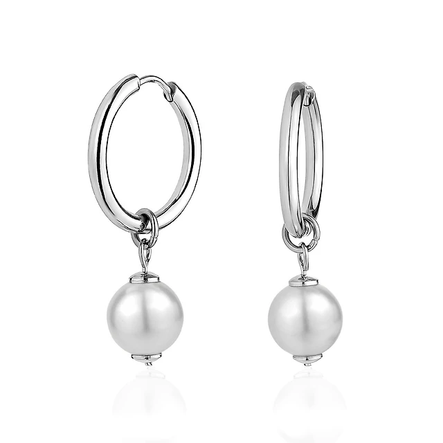 Boucles d'oreilles en argent sterling avec cubique zircons et Perles - en forme de coeur. Color: argent | Doucet Latendresse