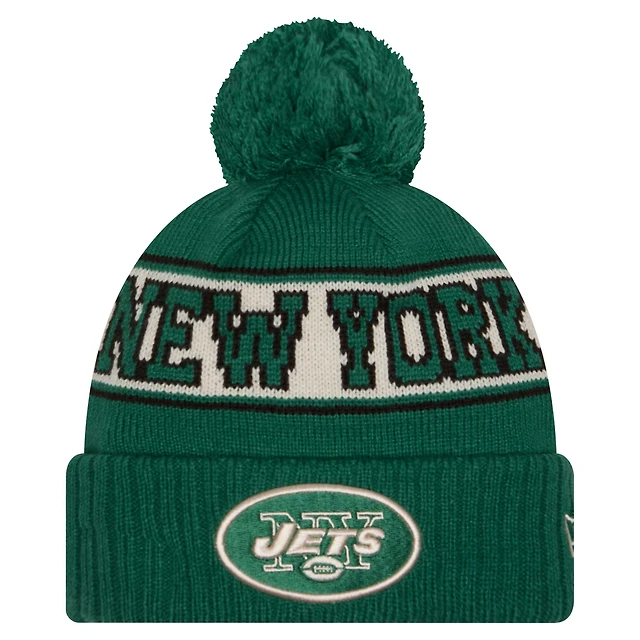 Bonnet en tricot à revers et pompon historique NFL Sideline Stone New York Jets pour homme de New Era