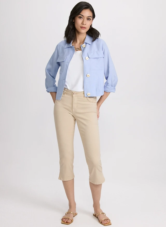 Veste courte en mélange de lin et capri en jean à poches tressées