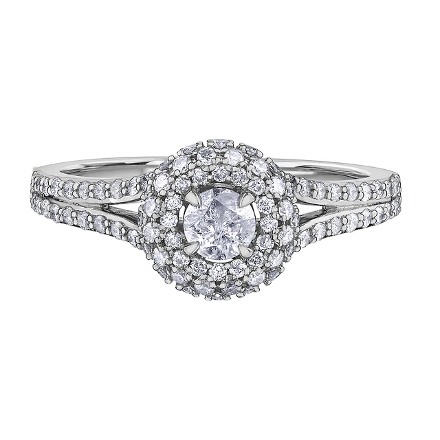 Bague de fiançailles Miabella avec moissanite 2 CT PBT et diamants 1/10 CT poids total en or blanc 14K