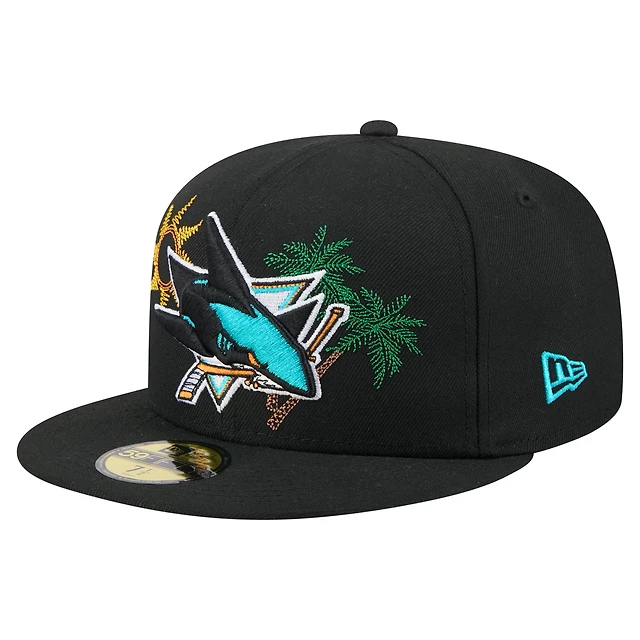 Casquette ajustée New Era 59FIFTY noire pour homme, motif State Stitch des Sharks de San Jose