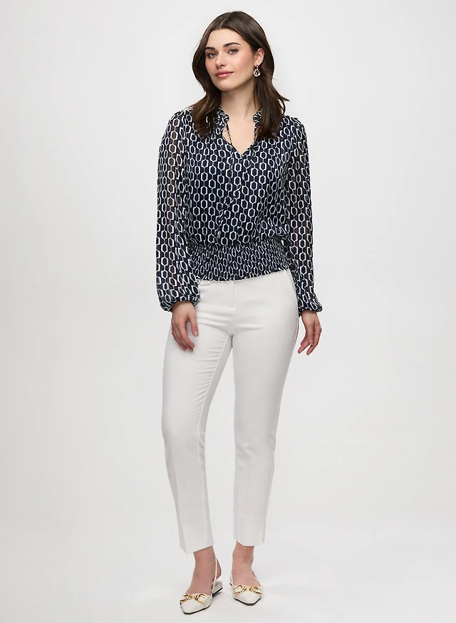 Blouse géométrique à taille froncée et pantalon longueur cheville