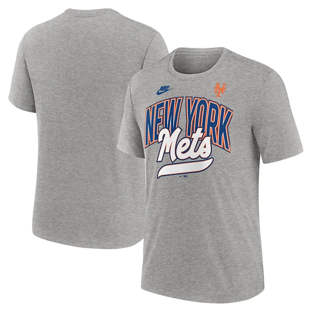 T-shirt Nike gris chiné pour homme, collection Cooperstown, style rétro, tri-blend, New York Mets
