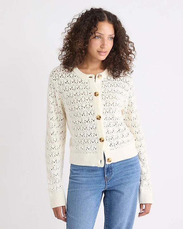 Cardigan Court à Manches Longues en Mailles de Fantaisie