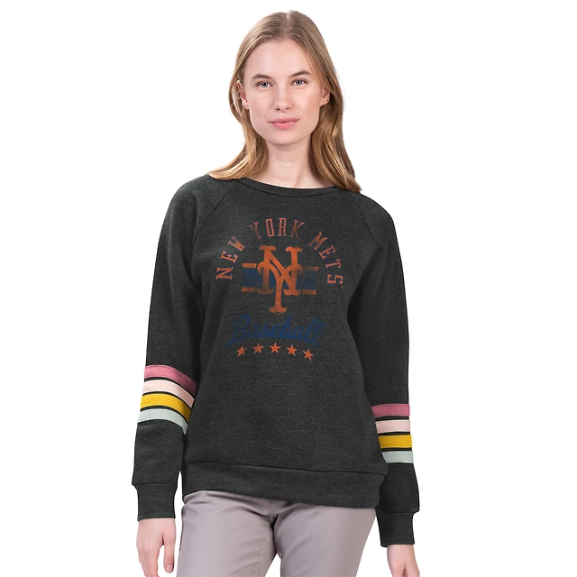 Sweat-shirt à col raglan pour femme G-III 4Her par Carl Banks gris chiné New York Mets Gridiron