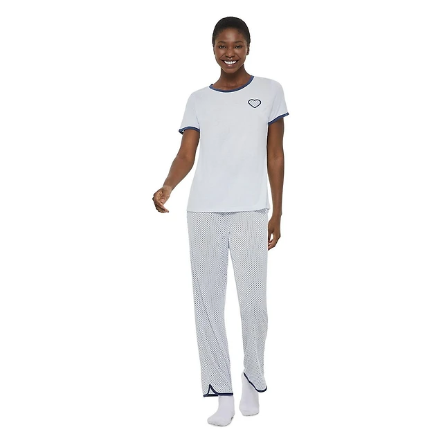 Ensemble de nuit 2 pièces t-shirt et capri bordé de dentelle George pour femmes