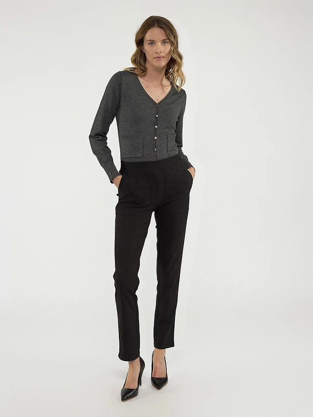 Pantalon à jambe évasée en tricot confortable avec taille boutonnée repliée