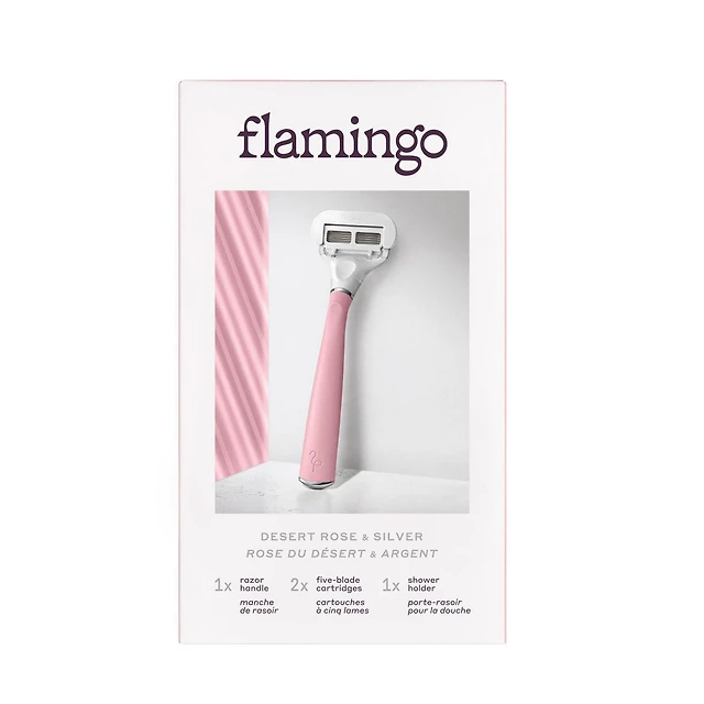 Rasoir Flamingo à 5 lames pour femmes avec une cartouche de lames de recharge – Rose du désert