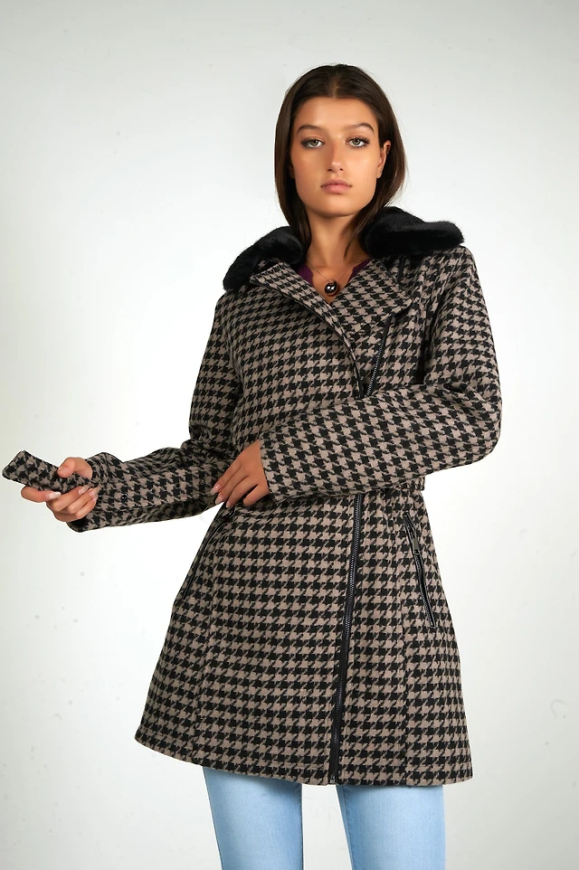 Manteau long à détail de fourrure - TANIA (E-C6)