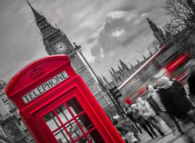 Assaf Frank - London Houses of Parliment telephone box and stormy clouds