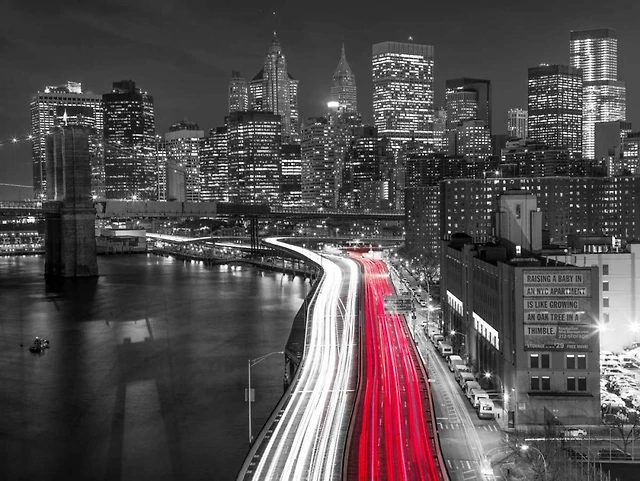 Assaf Frank - Strip lights on streets of Manhattan by east river, New York