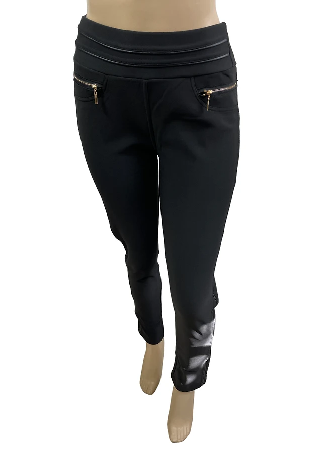 Leggings with side inserts faux leather braid