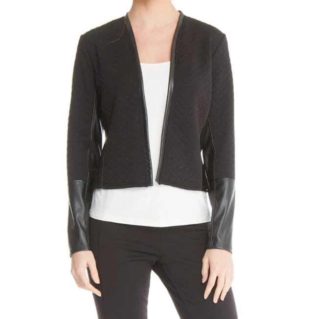 Quilted jacket with faux leather inserts