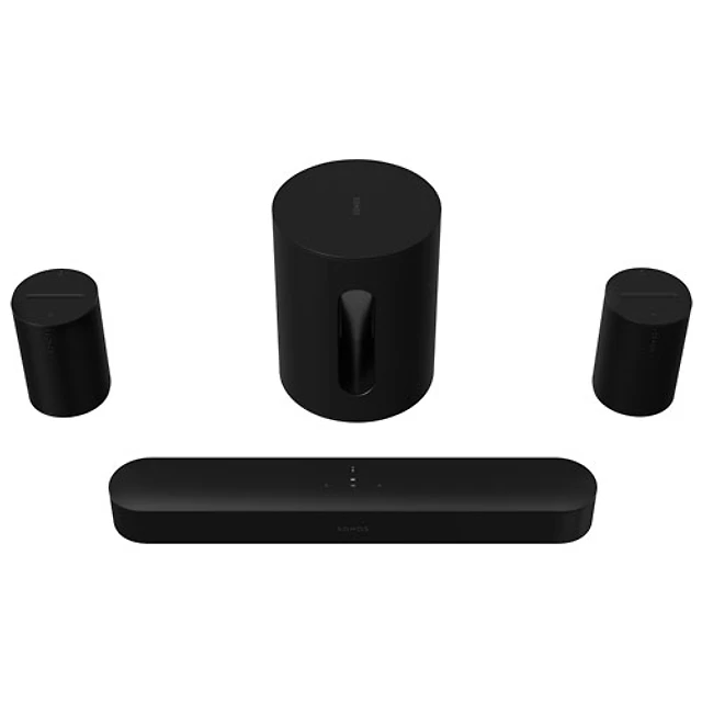 Barre de son Beam (2e gén.), haut-parleur d'extrêmes graves sans fil Sub Mini et 2 haut-parleurs multipièces Era 100 de Sonos