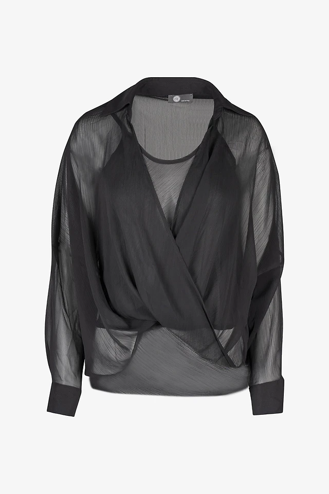 Women's Woven Sheere Criss-Cross Long Sleeve Top | M