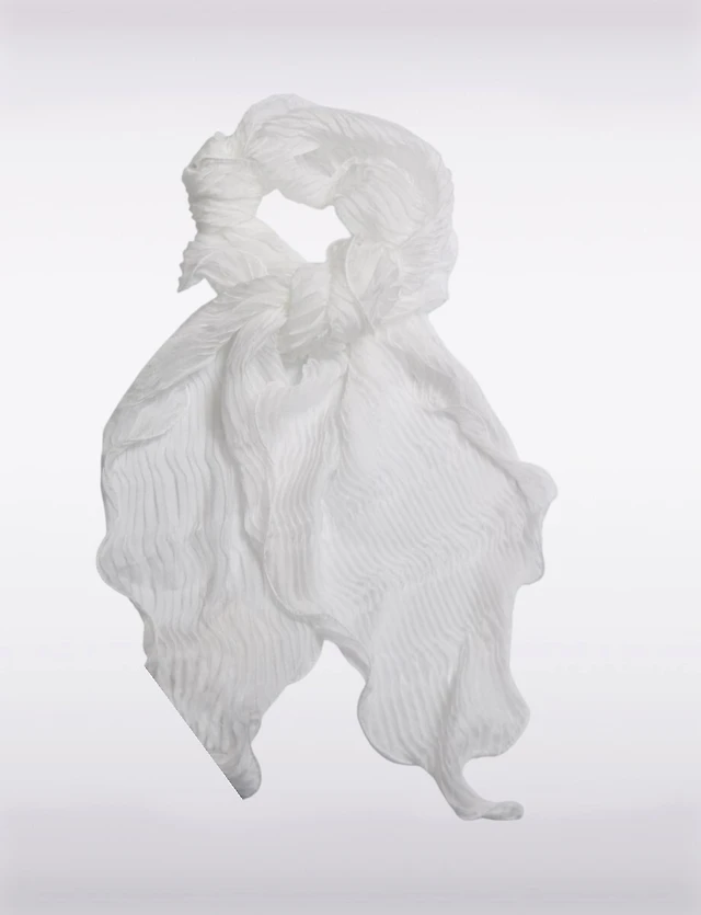 Écharpe Légère et Élégante en Mousseline Plissée aux Bords Finement Festonnés